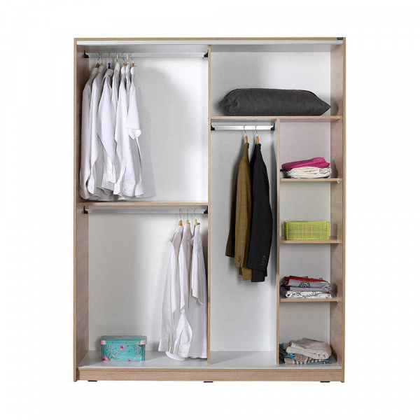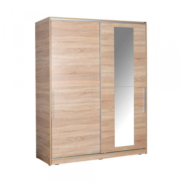 Adore wide wardrobe with sliding doors and mirror a stylish and sustainable storage solutions in the sonoma/white color combination.This product has ungergone a meticulous refurbishment process, ensuring its quality and durability. Crafted from materials that would have otherwise been wasted, the wide wardrobe with sliding doors and a mirror represents a conscious choice to reduce environmental impact and promote responsible consumption.